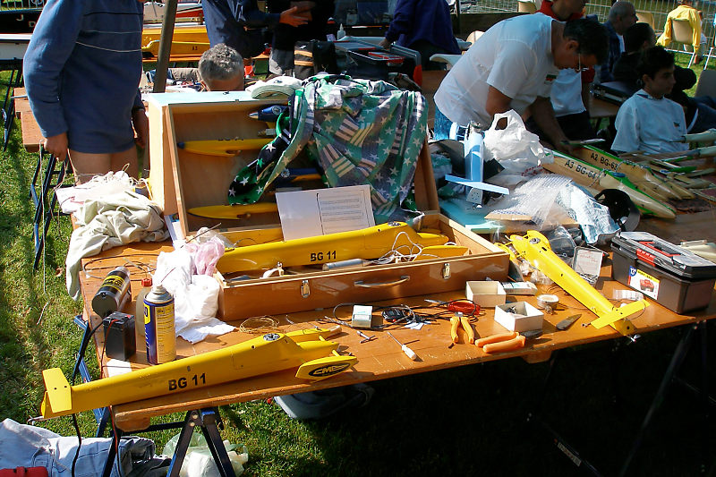 Une autre catégorie, cette fois ci avec une hélice aérienne et un moteur thermique de 2.5cm3 (classe B1). Le câble d’acier fait 0.5mm de diamètre.