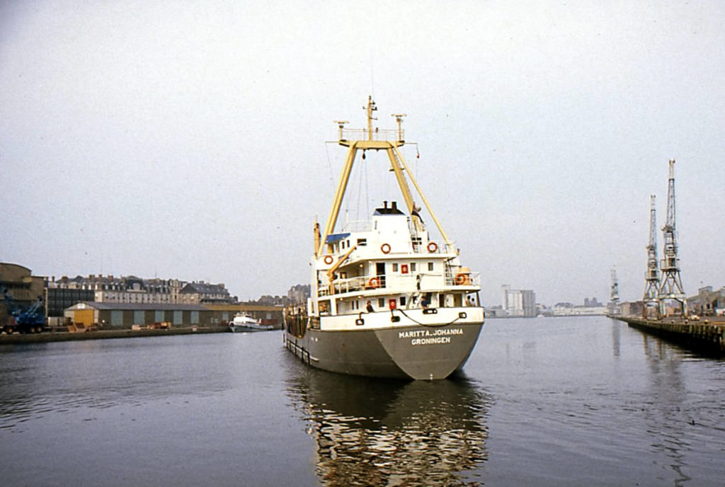 Dans le port de  Saint Malo en 1985. En arrière plan , le remorqueur Côte d'Emeraude.