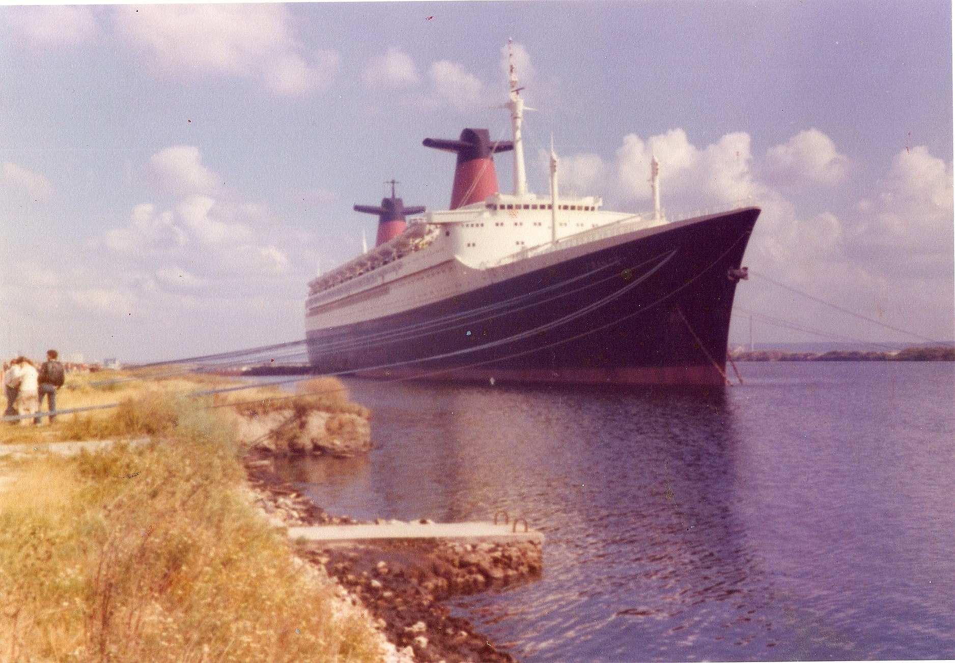 Triste fin sous pavillon français du plus beau paquebot français.  Photos prises au au quai de l’oubli au Havre en été 1978.