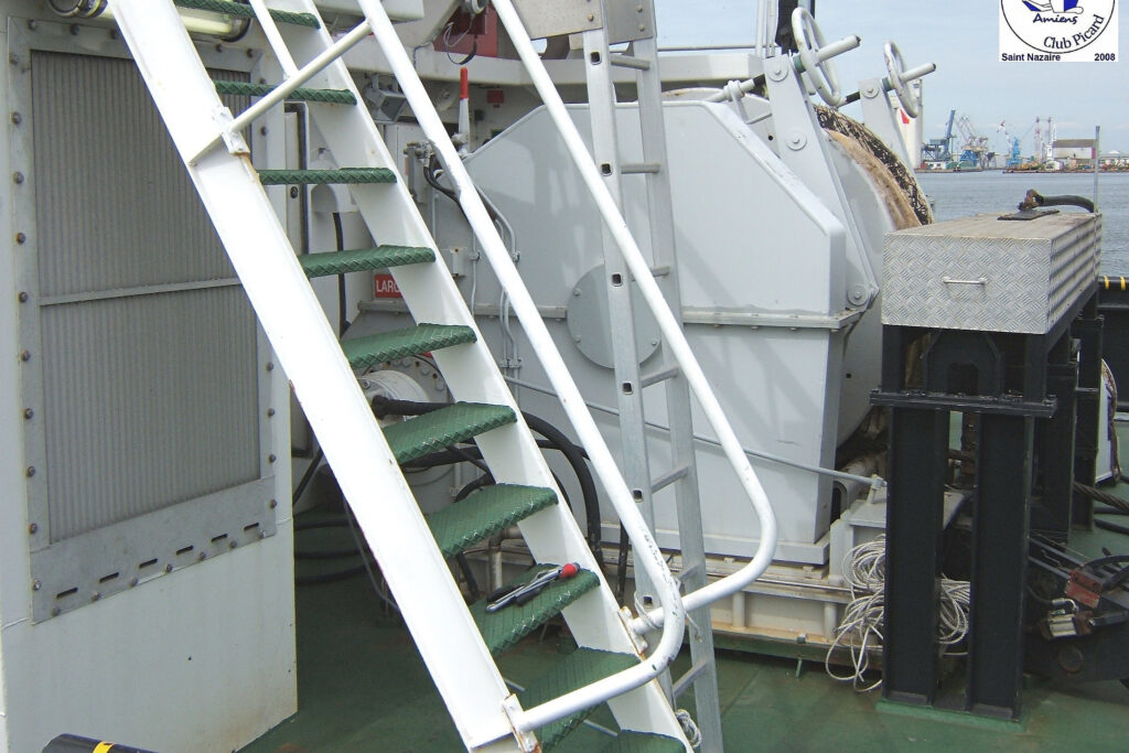 Il est équipé de 3 treuils, à l’avant un treuil à 2 tourets enroulant 170 mètres et 70 mètres de textile en 80mm, à l’arrière un treuil enroulant 400 mètres de câble d’acier de 48mm.