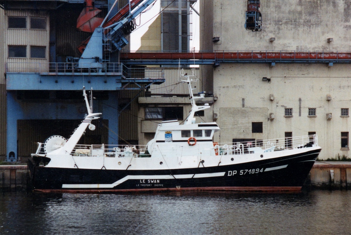 Le 21 janvier 1984, LE SWAN (en français LE CYGNE) DP571894 faisait son entrée au Tréport tout de blanc vêtu. Il est la propriété de Michel le Bail, patron pêcheur du Tréport. A partir du mois d’août 2000 il arbore une nouvelle livrée, la coque étant alors repeinte en noir.