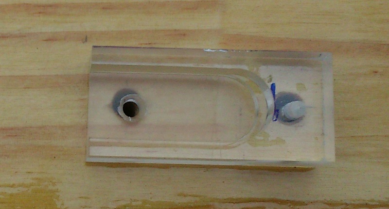 Les supports avant et arrière faits dans une plaque de plexiglas d’au moins 1 cm d’épaisseur.  L’’arrière sert juste à maintenir  la quille sur le support. Le surfaçage  des coupes est fait à la fraiseuse. Des trous taraudés permettront la fixation à l’aide de vis sur le support.