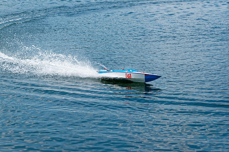 Le modèle de Irénée D  . est un offshore thermique réalisé à partir d’une coque en résine à hélice semi-immergée.