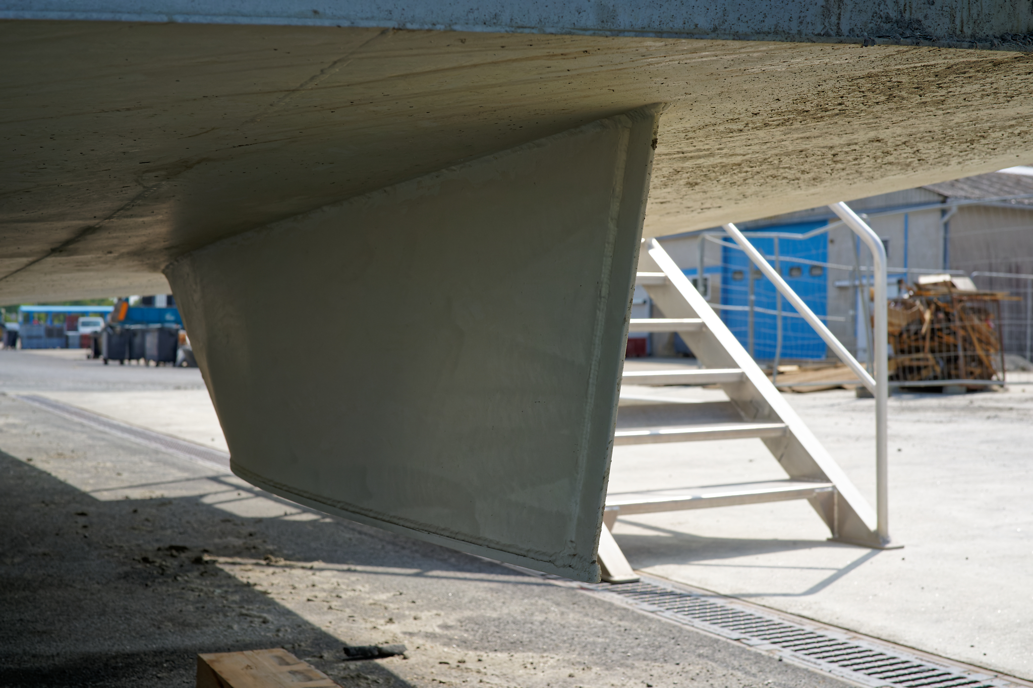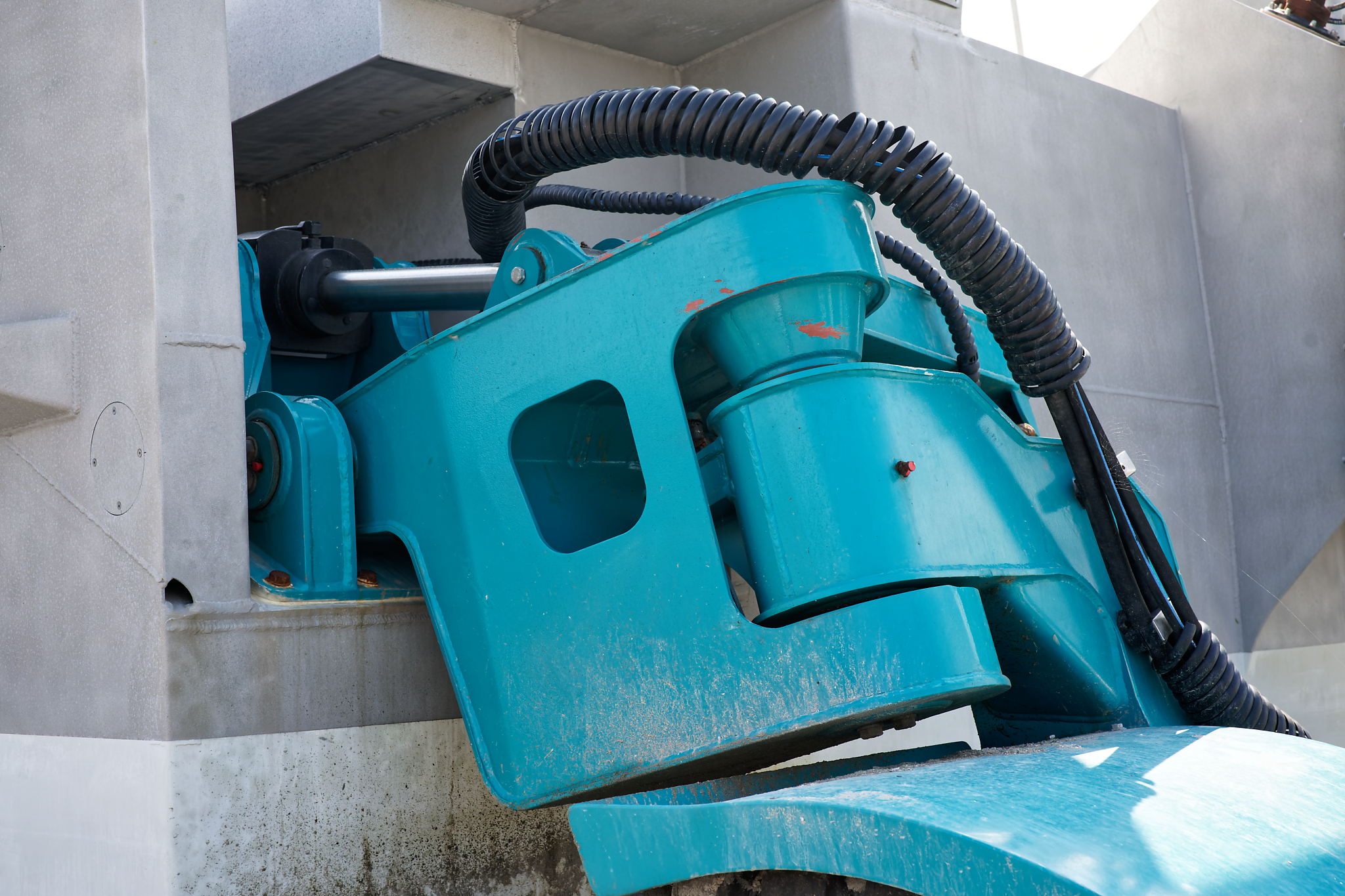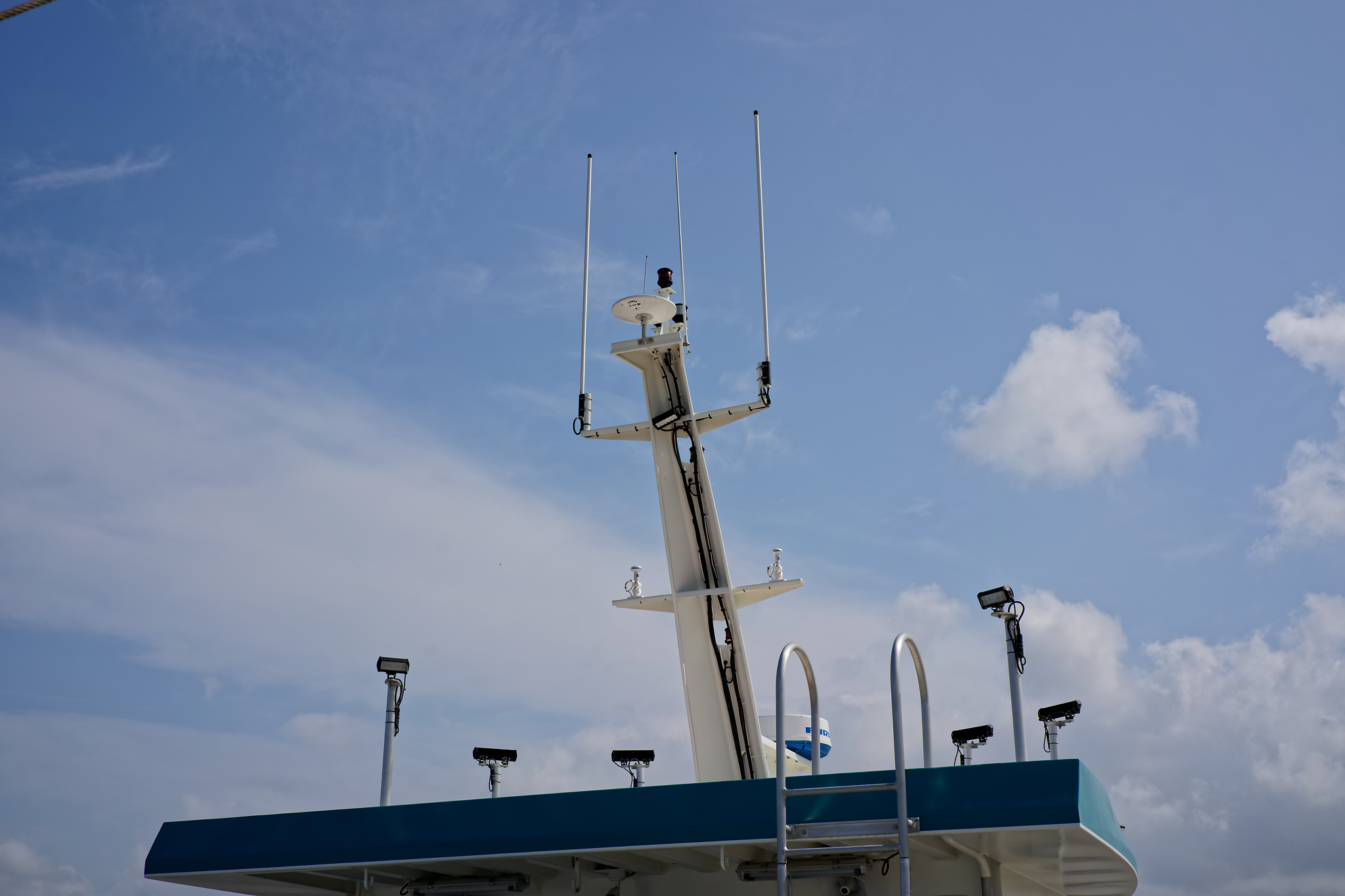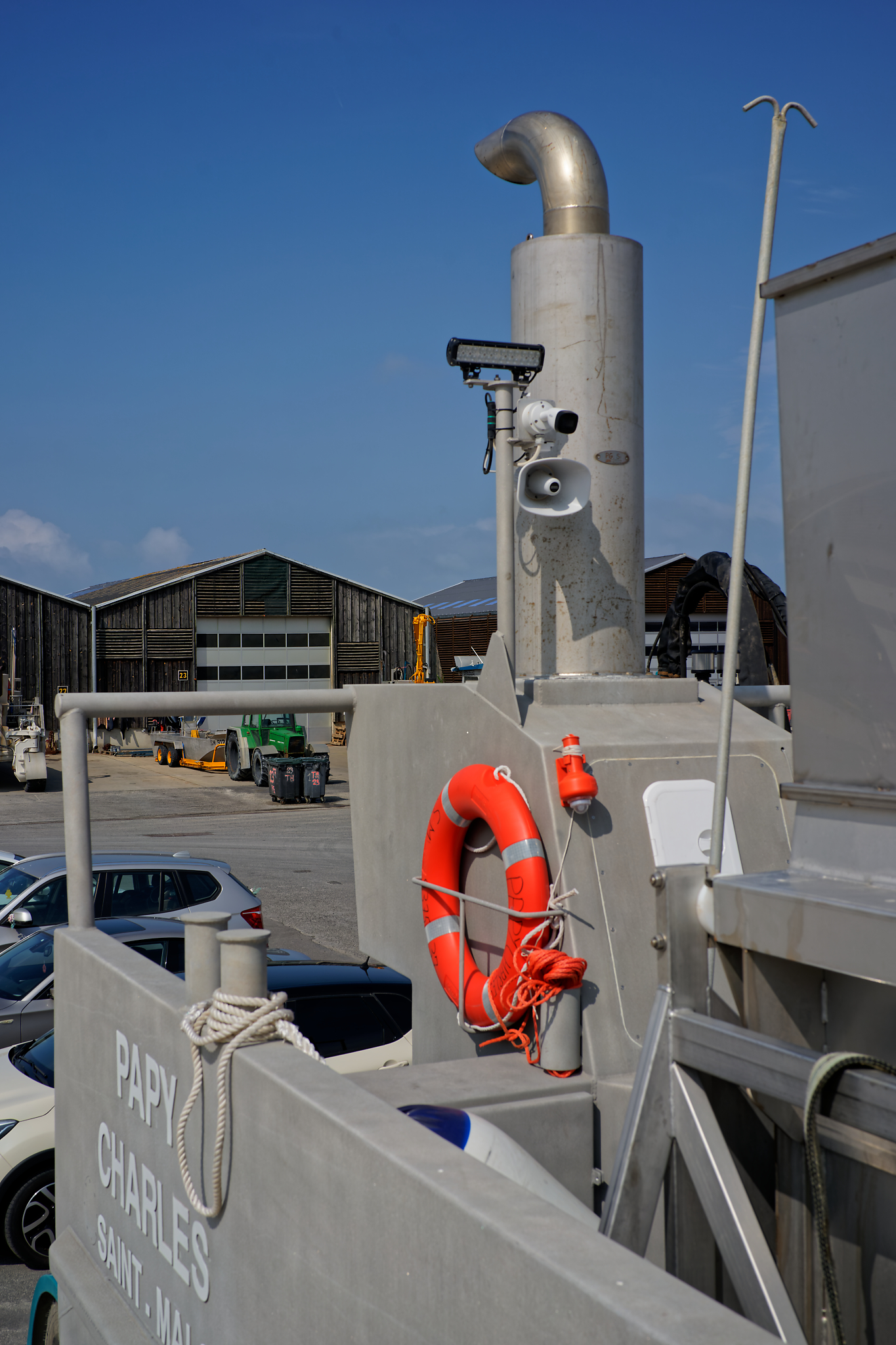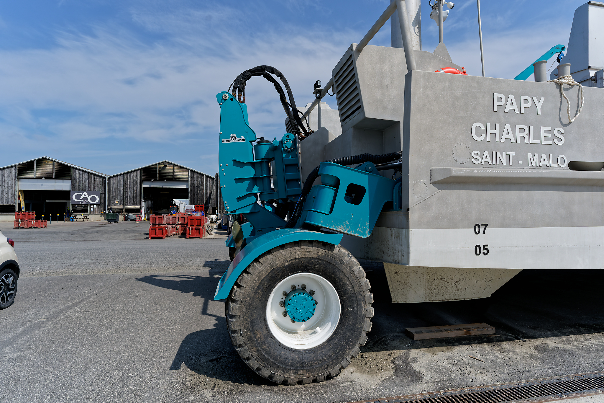 il est équipé d’une grue hydraulique 7 T/M 2T, deux potences hydrauliques 7 T/M et d’un propulseur d’étrave hydraulique.