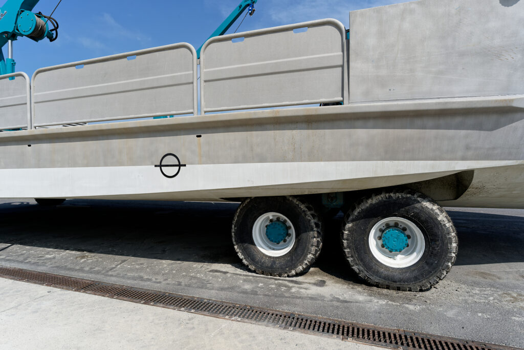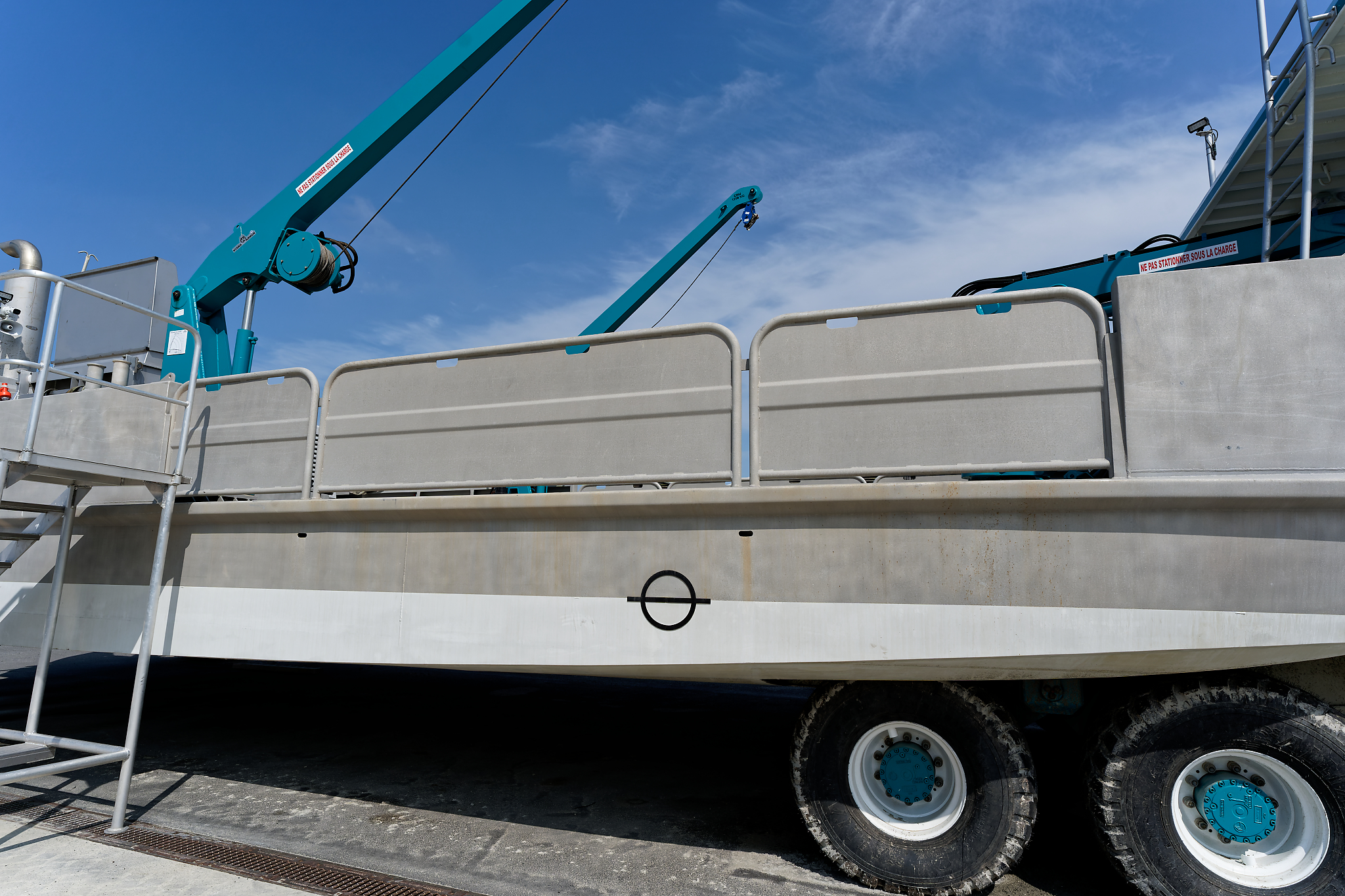 Il possède six roues motrices relevables.